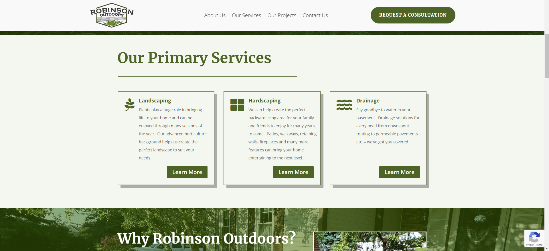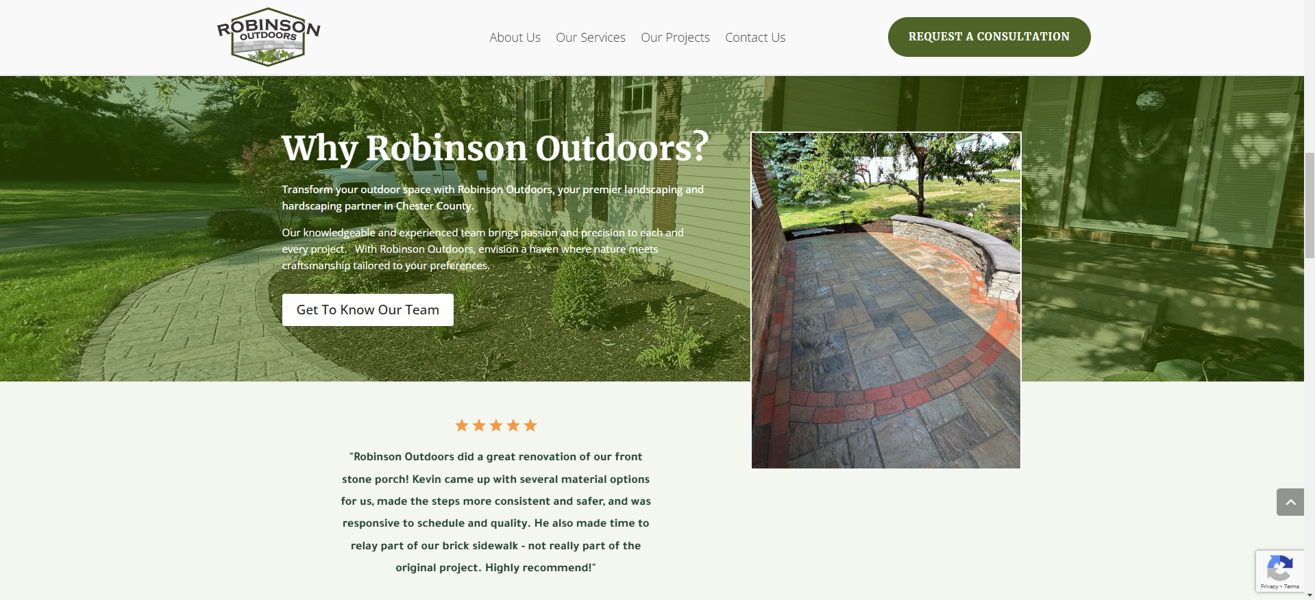 Robinson Outdoors LLC is a Chester-County based outdoor contractor, focusing on design / build spaces, landscaping, drainage, and more. IT Edge partnered with Robinson Outdoors for a full site build, website management, and SEO processes.